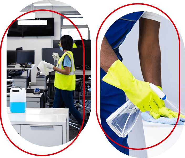 - Aération et dépoussiérage : parties communes, bureaux, mobilier, sièges, piétements, plinthes…